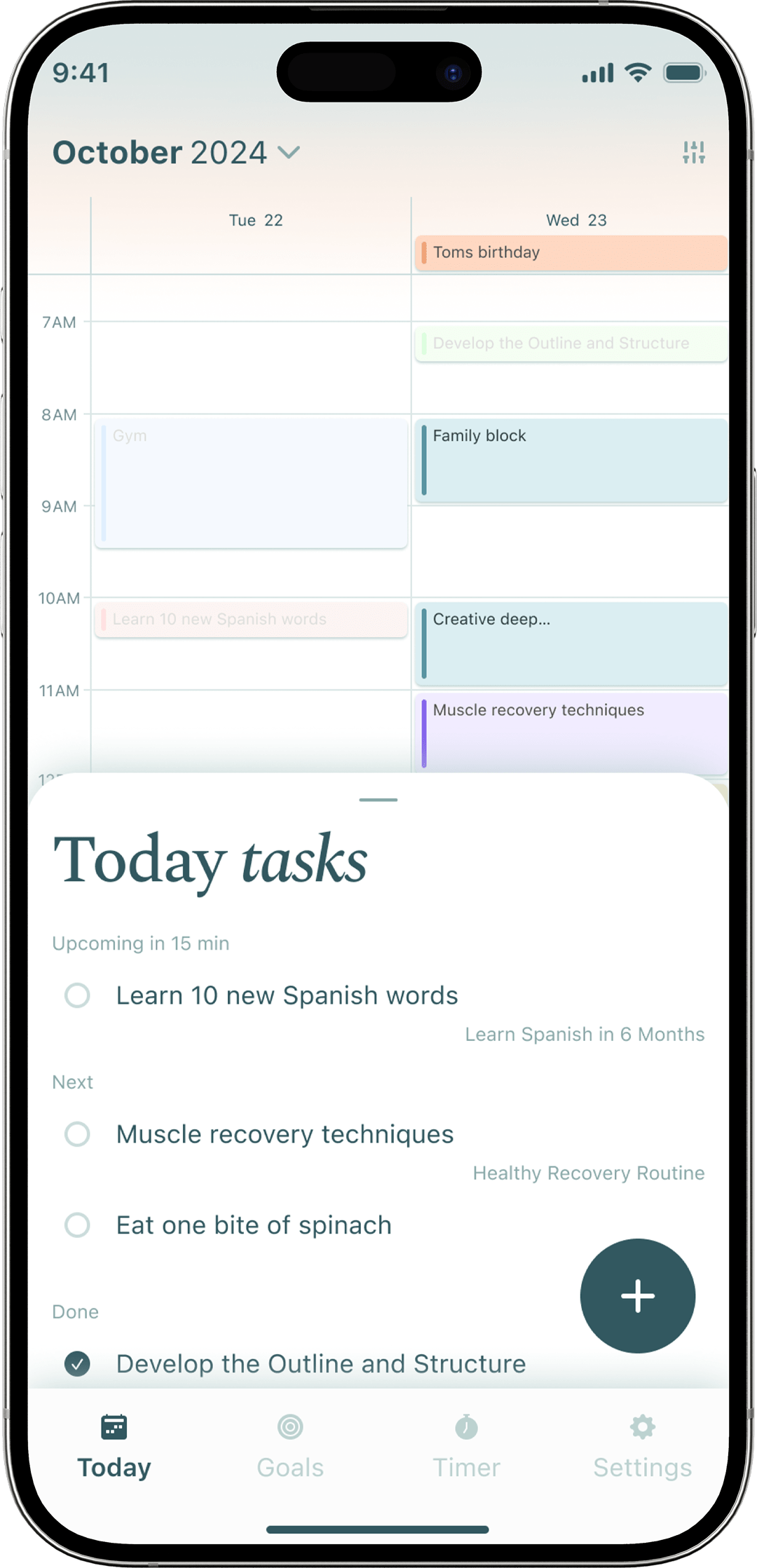 Tap to snooze, mark as done, or switch modes to avoid breaking flow.