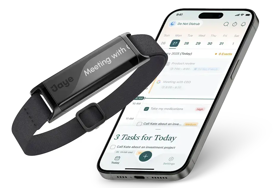 A wearable band that vibrates and displays only the reminders that matter to reduce distractions, increase focus and help you accomplish your goals.